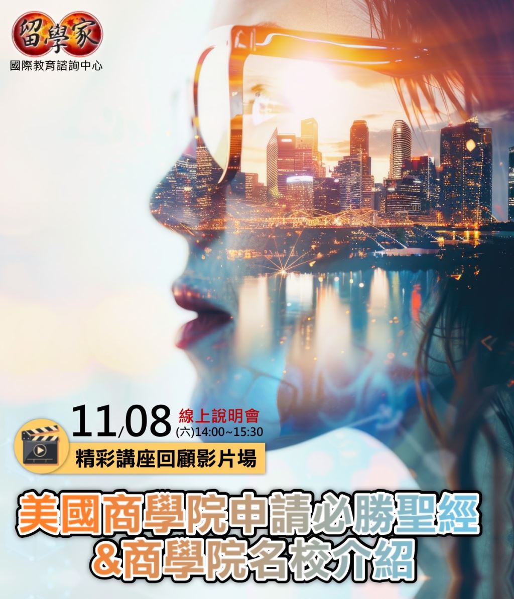 2025年11月08日(六) 【精彩講座回顧影片場】美國商學院申請必勝聖經 & 商學院名校介紹