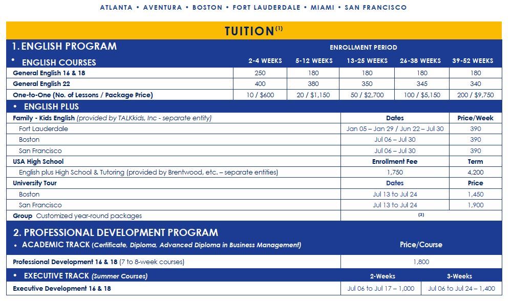 以上報價,以學校公告為準,報名前請先洽詢留學家顧問