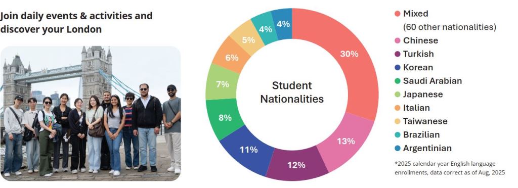 自 1953 年以來,我們一直是英語教學與師資培訓領域的業界標竿。學校坐落於倫敦**柯芬園(Covent Garden)**的創意核心地帶,憑藉現代化的設施與頂尖教師團隊,我們不只教授英語,更致力於引領您發掘自身的無限潛能。 我們的優勢: ▲專業教學: 由業界領先的教師與培訓導師提供專業指導。 ▲精華地段: 位處倫敦核心,沉浸在充滿活力的柯芬園氛圍中。 ▲全方位沉浸: 透過豐富的每日活動與社交規劃,達成深度語言實踐。 ▲國際人脈: 與來自全球各地的學生建立跨國的終生友誼。 ▲權威認可: 獲得全球雇主一致認可的頂級專業認證。 ▲非營利精神: 作為慈善信託機構,我們始終將您的「學習體驗」置於利潤之上。 從入學的第一天起,您不只是在學習一門語言,更是在建立自信、創造回憶,並為自己開啟通往全球機遇的大門。