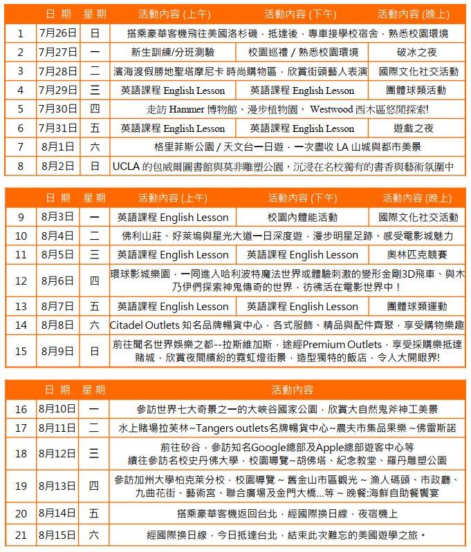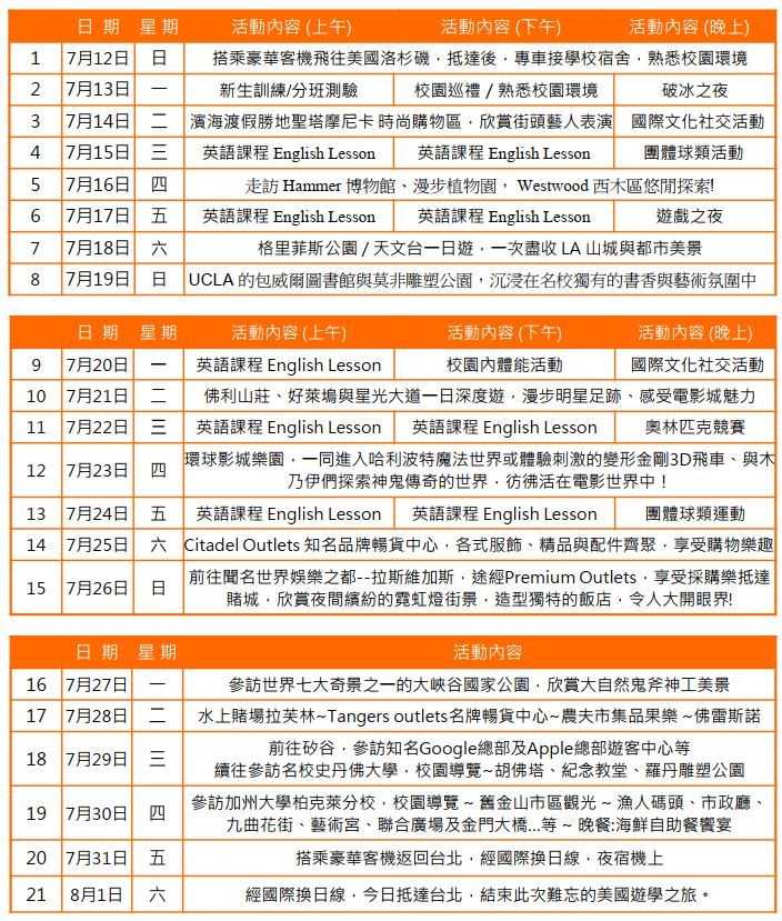 由學校安排外籍活動輔導員,導覽洛杉磯各著名觀光景點及戶外活動,讓學員一面享受語言學習的樂趣,一面發掘美國各種新鮮事物,增廣見聞、開闊國際視野。