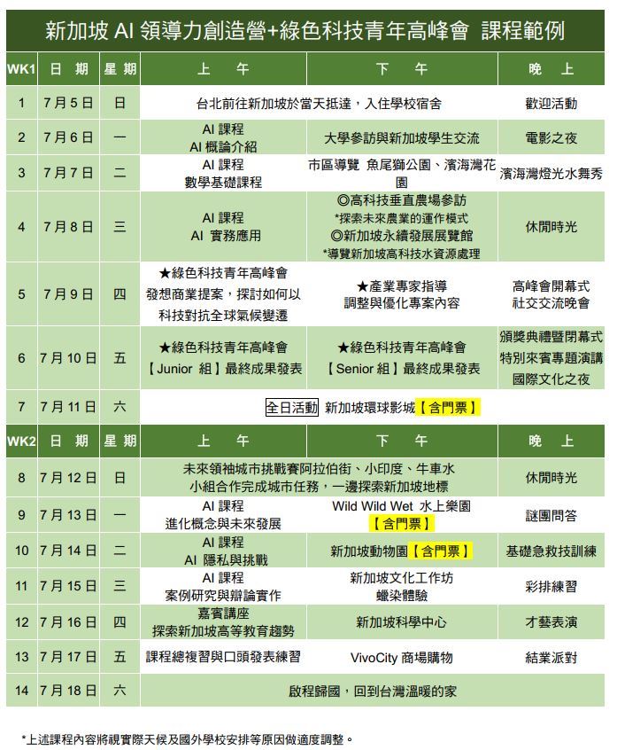 新加坡AI領導力創造營+綠色科技青年高峰會 GI2600