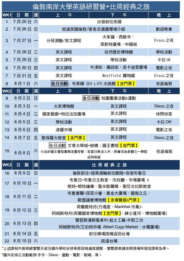 倫敦南岸大學英語研習營+比荷經典之旅 GK2606