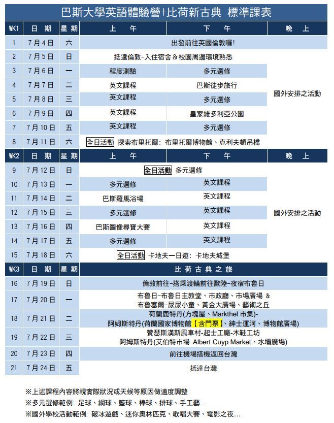英國巴斯大學英語體驗營+比荷新古典 GK2616
