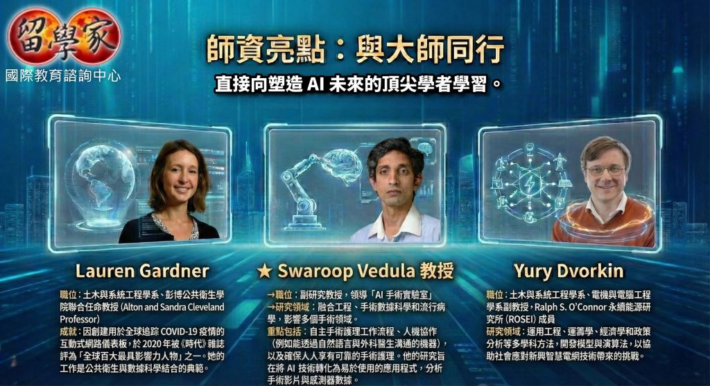 兩週沉浸式學習,在全球頂尖研究型大學向 JHU 教授學習人工智慧的真實世界應用。 可獲得研究所級別學分、取得官方成績單與專題成果,為未來升學與職涯打造高含金量跳板。