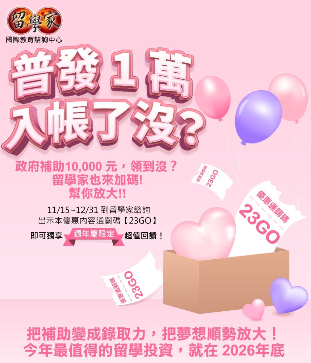 政府補助 10,000 元,領到沒?留學家也來加碼! 幫你放大!