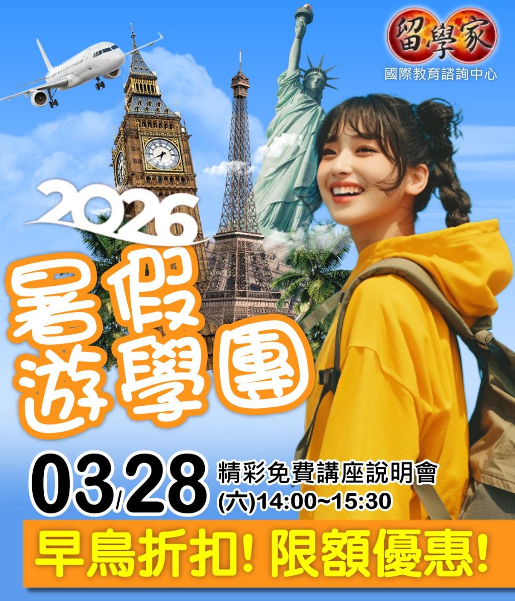 2026年03月28日 (六)【精彩免費講座說明會】2026暑假遊學團,早鳥折扣,限額優惠!!