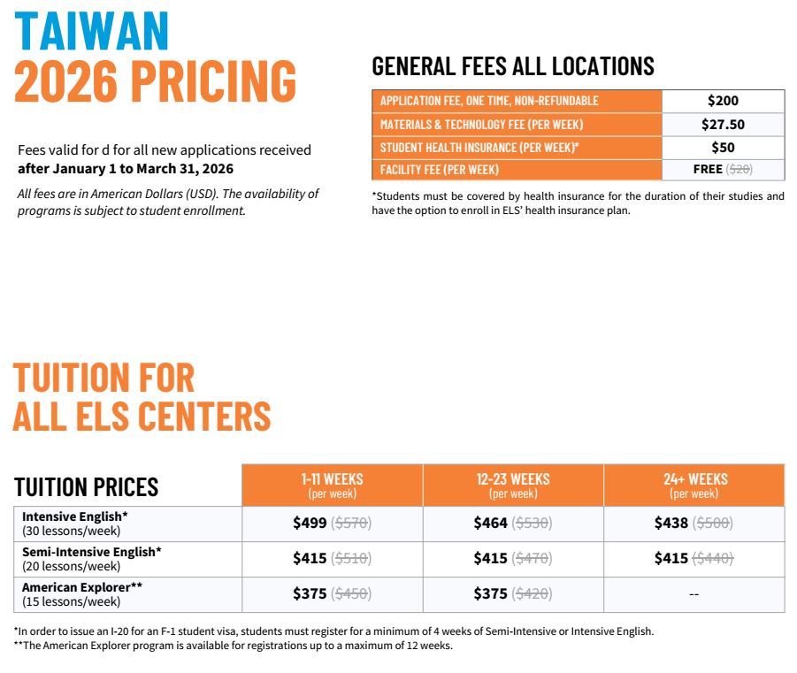 ELS不收住宿安排費,但住宿家庭申請4週以下需要繳交住宿安排費$200美金(宿舍不接受4週以下申請) 。