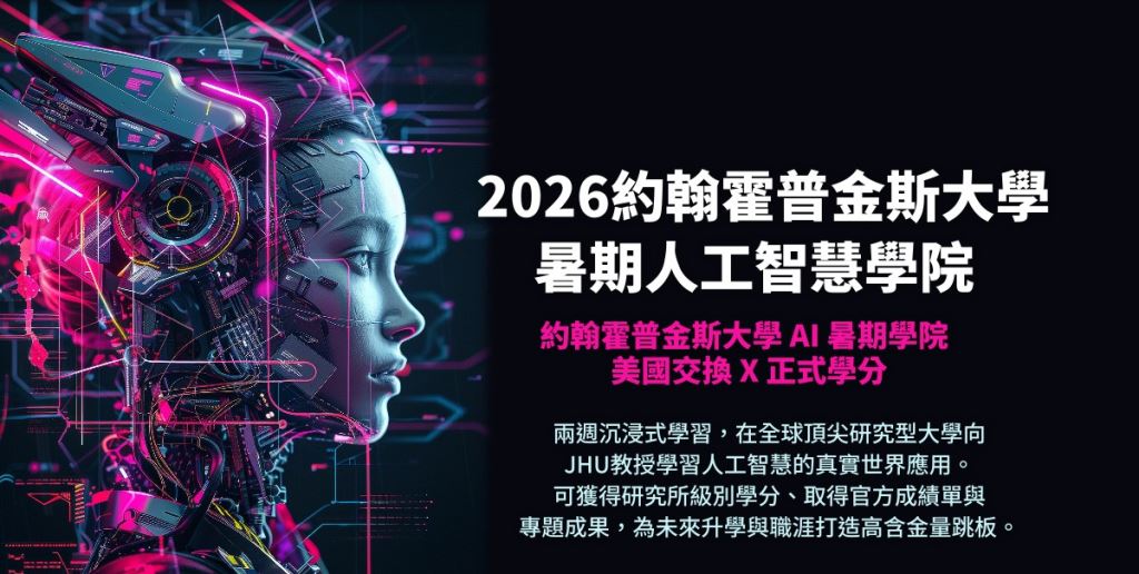 兩週沉浸式學習,在全球頂尖研究型大學向 JHU 教授學習人工智慧的真實世界應用。 可獲得研究所級別學分、取得官方成績單與專題成果,為未來升學與職涯打造高含金量跳板。